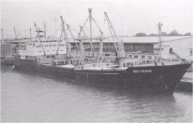Figure 6-25. The Soviet cargo ship Nbah Pycakob in the port of Conakry, Guinea.
