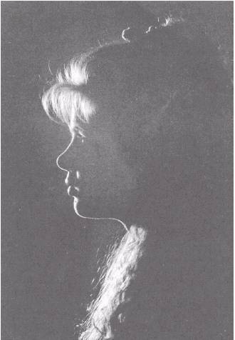 Rim lighting is often used when making profile portraits. Rim lighting is the same as backlighting, where the subject is lighted from behind causing the facial features of the profile to be highlighted (fig. 7-11). Some suggestions to use when taking profile portraits are as follows: In a profile portrait, when a person looks straight ahead, only the whites of the eyes are seen by the camera. This causes an undesirable effect. Instead have the eyes cheat-turn the eyes slightly toward the camera, without turning the head, to show enough of the iris so the eye can be seen as an eye, not a white ball. Have the subject's head tipped back slightly. This separates the chin from the far shoulder, gives a better neckline, and reduces the appearance of a double chin. Allow more space on the side of the picture toward which the eyes are looking. This allows the subject to look beyond the frame. If you are interested in learning more about rim lighting, refer to the reference list in appendix III.