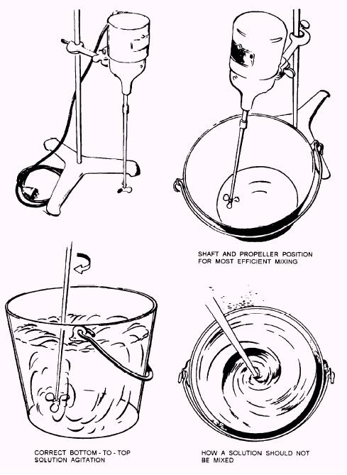 Two systems of temperature measurement are used: Fahrenheit and Celsius. The Fahrenheit scale uses F as a temperature symbol. The Celsius scale uses C as its symbol. On the Fahrenheit scale 32 degrees is the freezing point of water, and the boiling point is 212 degrees. The difference is 180 degrees. The Celsius scale is 0 to 100 degrees from freezing to boiling. One degree Fahrenheit is smaller than one degree Celsius, one Fahrenheit degree being 5/9 of a Celsius degree. To convert Fahrenheit degrees into Celsius, subtract 32, multiply by 5 and divide by 9; that is, (F - 32) x 5/9 = C. To convert Celsius to Fahrenheit, multiply by 9, divide by 5, and add 32; that is, (C x 9/5) + 32 = F. Some formulas use the word parts as a measure. They may call for two parts of one chemical, one part of another, and any number of parts of water. This is frequently done when two or more stock solutions must be combined to make the working solution. In such cases, the word parts means any convenient volume measurement may be used; however, the same measure should be used for everything required by the formula. A part may be a fluid ounce or a gallon, depending upon the total quantity of working solution needed Formulas use parts only when volume is to be measured. The term stock solution identifies a concentrated chemical solution. A working solution is the solution used for processing. The working solution may be the same as the stock solution, but more than likely it is a diluted stock solution.