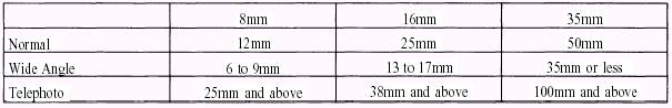 Figure 13-1. Camera Sizes and Lens F-1 Lengths