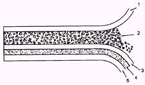Figure 2-2. Cross section of black-and-white film. highlight area and a shadow area is not perfectly sharp. This is because the high-density area tends to bleed onto the low-density area due to the scattering or diffusing of light in the emulsion during exposure. |