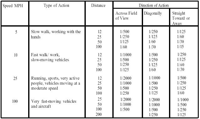 Table 4-2. Action Stopping Shutter Speeds for Normal-Focal-Length Lenses