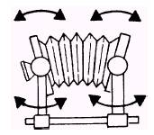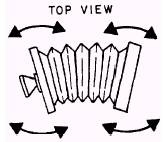 Figure 4-23. Front and rear vertical tilt movement. The front standard swing allows the lens to pivot horizontally around its optical axis. The swing front is used to increase the depth of field. When the swing back is swung, the film is not parallel with the image produced by the lens. By swinging the lens, you can bring the image onto the same plane as the film. 2. Vertical tilt. Both the front and rear standards tilt vertically (fig. 4-23). The tilt back is used to correct distortion, or perspective, in the vertical plane. When you angle the camera up to photograph a subject, such as a building, the vertical lines on the ground glass appear to converge. When this distortion is not corrected, the subject appears smaller at the top and the vertical planes bend toward the center of the image (fig. 4-24, view A). To correct this distortion, tilt the tilt back so it is parallel to the vertical plane of the subject (fig. 4-24, view B). The tilt front is used to focus and increase the depth of field. When the tilt back is tilted to correct for vertical distortion, the film plane is no longer parallel to the image produced by the lens. By tilting the front standard, you can bring the image of the lens onto the same plane as the film.
