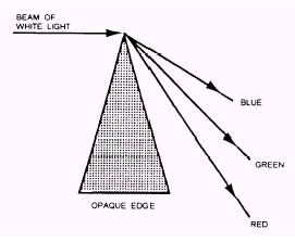 Figure 1-9. Diffraction. dispersion. This then ties in with the previous discussion of the colors of light where we saw the way a prism creates a spectrum from white light. The prism is able to create this spectrum because of dispersion. |