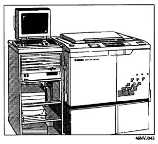 Figure 3-11.-Canon 500 color copier with the EF1 Fiery controller. Thermal-wax printers are designed to produce clean, bright colors; however, they have a limited range of colors because these printers are only capable of producing colors that are one-bit per color deep. These printers are relatively inexpensive and can produce large prints quickly. |