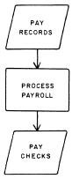 FLOWCHARTING Flowcharting is one method of pictorially representing a procedural (step-by- step) solution to a problem before you actually start to write the computer instructions required to produce the desired results. Flowcharts use different shaped symbols connected by one-way arrows to represent operations, data, flow, equipment, and so forth.There are two types of flowcharts, system (data) flowcharts and programming flowcharts. A system (data) flowchart defines the major phases of the processing, as well as the various data media used. It shows the rela-tionship of numerous jobs that makeup an entire system. In the system (data) flowchart, an entire program run or phase is always represented by a single processing symbol, together with the input/output symbols showing the path of data through a problem solution. For example: