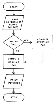 System Flowchart The second type of flowchart, and the one well use in this manual is the programming flowchart. It is constructed by the programmer to represent the sequence of operations the computer is to perform to solve a specific problem. It graphically describes what is to take place in the program. It displays specific operations and decisions, and their sequence within the pro-gram. For example: