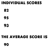 As seen in this example the blank PRINT statement produced a blank line between the individual scores and the average score. This feature may work differently on some computers.We could have written the previous example in semicolons to separate messages and numbers. a different mannerusingExample: Printing messages and numbers on the same line,