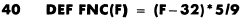 DEFINING YOUR OWN FUNCTIONS In addition to the predefine functions, BASIC allows you to define your own functions within a program. The statement for defining functions is the DEF (DEFINE) statement.The DEF statement consists of a statement number, the keyword DEF and the function definition. The function definition consists of the function name, followed by an equal sign, followed by a constant, variable, or expression. If the function requires an argument, then it must appear immediately after the function name, enclosed in parentheses. The following example shows how a function to convert Fahrenheit to Celsius could be defined.Example: