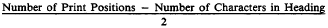 The form width for this example was sixty-two (62) positions. A formula that can be used to aid you in centering printed output is: