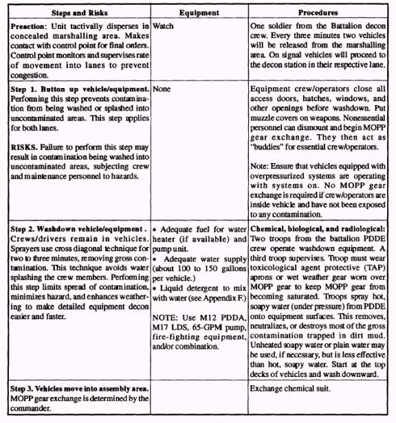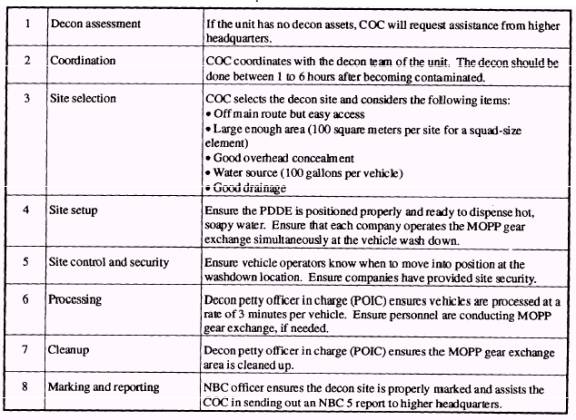 OPERATIONAL DECON SUMMARY The PDDE crew must control contamination runoff during the execution of operational decon. The PDDE For operational and logistical purposes, units crew should move the PDDE a few meters away from the should plan to conduct vehicle wash down and