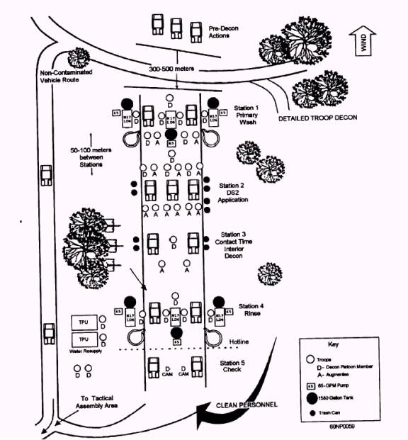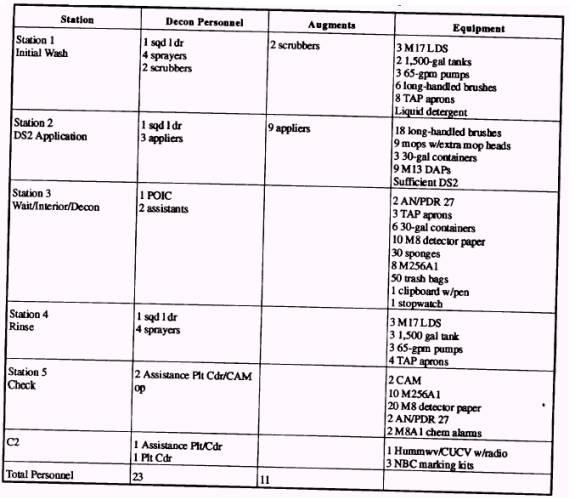 DECON TEAM EQUIPPED WITH AN M17 While this DED configuration is manpower LDS.- Decon teams equipped with the M17 LDS will . and equipment intensive, it provides for the set up the DED differently from M12A PDDA-equipped rapid decontamination of vehicles and units. The optimum setup of a DED for an M17 equipment (eight vehicles processed per hour) LDS-equipped platoon is shown