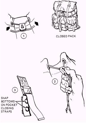 2-14.-Buckles for closing and opening pocket flaps and main compartments.