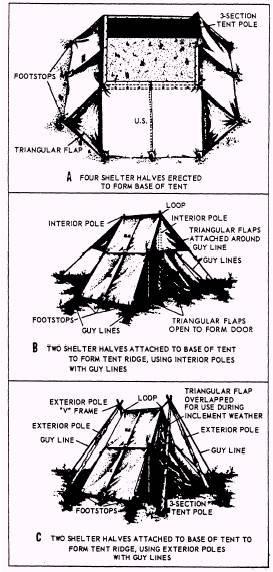 shelter halves can be joined together to make a six-man tent (fig. 2-28). You