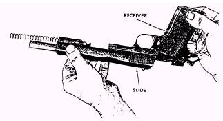 4. Pull the receiver rearward to separate it from the slide, as shown in figure