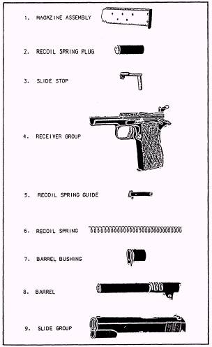 Figure 3-37.-Parts of the pistol in order of field-stripping.