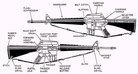 Figure 3-1.-M16A1 service rifle, 5.56 mm, left and right side views.
