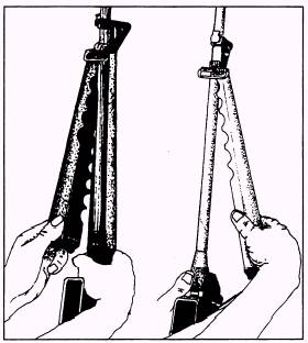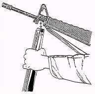 Figure 3-4.-Attaching "clothespin" bipod to M16 rifle.