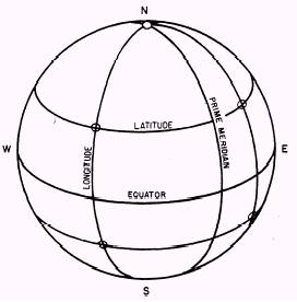 Systems One of the oldest reference systems is based upon the geographic coordinates-meridians and parallels. MERIDIANS are great circles of north-south rings crossing the equator at right angles and converging at the North and South Poles. (See fig. 5-2.) One meridian that runs through Greenwich, England, is known as the prime meridian. Meridians are used to measure LONGITUDE-the distance of a point east or west of the prime meridian. PARALLELS are great circles of