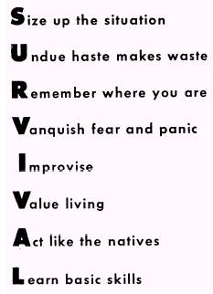 SURVIVAL The experience of hundreds of servicemen isolated during World War II, the Korean conflict, and the Vietnam conflict proved that survival is largely a matter of mental outlook The will to survive is the deciding factor. Whether with a group or alone, you experience emotional problems resulting from fear, despair, loneliness, and boredom. Also, your will to live is sure to be taxed by injury and pain, fatigue, hunger, and thirst. When you are not prepared mentally to overcome all obstacles and accept the worst, your chances of coming out alive are greatly reduced. The shock of finding yourself isolated behind the enemy lines, in a desolate area, or in enemy hands can be reduced or even avoided if you remember the meaning of the letters in the keyword S-U-R-V-I-V-A-L (fig. 64). l S-Size up the situation by considering yourself, the country, and the enemy. When you think about yourself, hope for the best, but be prepared for the worst. Recall your survival training and expect it to work. After all, you have been