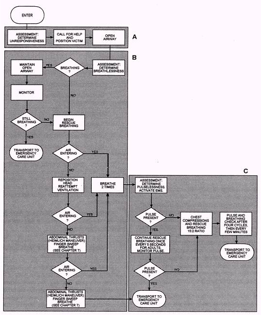 Figure 10-10.-One-rescuer CPR decision tree. Figure