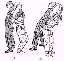 Bend forward, pulling him onto your back (fig. 10-27, view B).