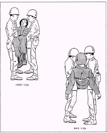 carry is useful for a short distance.Two men lift and carry the casualty, as
