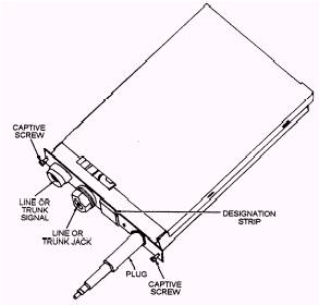 Figure 11-19.-TA-222/PT line and trunk pack. call except when the buzzer volume control is set in the OFF position. The visual indicator shows four white, luminous markings that remain visible until you press the talk switch. Rotate the buzzer volume knob to adjust the buzzer volume. For maximum volume, rotate the knob counterclockwise as far as possible. For volume less than maximum, first request the distant party or switchboard for a ringing signal. When the buzzer sounds, rotate the buzzer volume knob clockwise until you obtain the desired volume. |