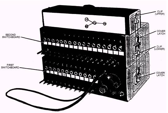 SB-22/PT TELEPHONE SWITCHBOARD The SB-22/PT telephone switchboard shown in figure 11-17 is a lightweight, battery-operated, field switchboard that has 12 interconnecting voice-frequency circuits. The SB-22/PT is normally used to interconnect local-battery telephone circuits, remote-controlled radio circuits, and voice-frequency teletypewriter circuits. Four BA-30 flashlight batteries provide 3 volts of direct current for its operation. The SB-22/PT has a range of 14 to 22 miles. The switchboard unit weighs about 30 pounds. The SB-22/PT consists of four basic parts: the operator's pack (fig. 11-18); the line and trunk pack (fig. 11-19); the accessory kits (fig. 11-20); and the handset-headset (fig. 11-21). Before operating the SB-22/PT switchboard, you should first become familiar with the different controls