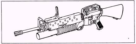 Figure 13-1.-The 40-mm grenade launcher, M203, mounted on