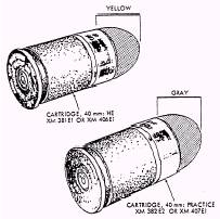 LAUNCHER AMMUNITION The cartridges used with the launcher, as shown in figure 13-5, are fixed types of ammunition that consist of two major assemblies: the cartridge case and the projectile. Five standard A types of 40-mm ammunition are used with the launcher: high explosive (HE), high explosive airburst (HE airburst), high explosive smokeless and flashless, high explosive dual purpose (HEDP), and training practice (TP). These cartridges are ready for use as issued. No prior preparation of the rounds is required other than removal from the packing and insertion into the weapon.