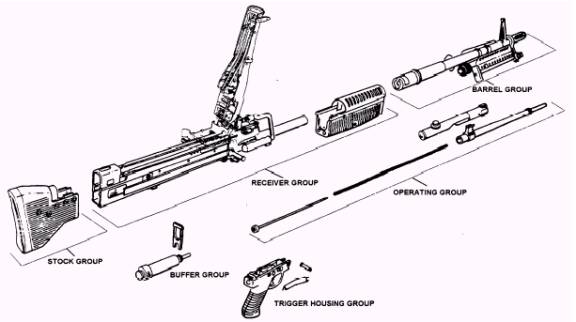 Corrective Action Figure 13-16.-M60 machine gun disassembled into six major