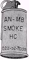 12-6.-Practice hand grenade. M8 colored-smoke hand grenades are the same size and shape as the HC smoke grenades. The M8 will produce red, green, or yellow smoke for 1 to 1 1/2 minutes when ignited. The color of the filler is indicated in writing on the body of the grenade, and both ends are colored the same as the smoke the grenade will produce. The M8 is used for ground-to-air or ground-to-ground signaling (fig. 12-5). NOTE Under the new standard marking system, these grenades have a light green body with black lettering. Practice