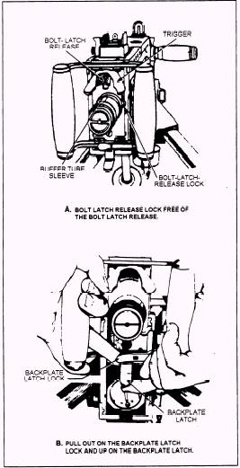 retracting slide (bolt) handle to the rear slowly (view B). That moves the