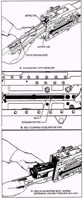 the .50-caliber BMG, replace the major component groups in reverse order. You