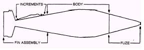 Figure 14-7.-A typical round of mortar ammunition. being transported. There is a carrying bag made of canvas to hold each of the sections. The aiming posts are 8 feet long and 11/8 inches in diameter. They are painted with 5-inch red and white horizontal stripes to aid in sighting the mortar. The lower section of each aiming post has a pointed end to help place it in the ground. Most of these aiming posts become unserviceable because of improper use. These posts are hollow and can be easily bent if dropped. When positioning the posts in hard or frozen earth, you should loosen the ground with an entrenching tool before trying to seat them. Do NOT attempt to hammer the aiming posts into the ground. This may bend the sections or burr the connections, making the posts unserviceable. The AIMING POST (M14) is used with the mortar as an aiming point. Two aiming posts are provided for each mortar. When positioning the posts in hard or frozen earth, you should loosen the ground with an entrenching tool before trying to seat them. DO NOT attempt to hammer the aiming posts into the ground. This may bend the sections or burr the connections, making the posts unserviceable. The AIMING POST LIGHT (M58, GREEN AND M59, ORANGE) is used for night firing by clamping the light to the aiming post. You can only see the glow of the aiming post light from the direction of the mortar position. The colored lights aid the gunners in identifying their own aiming posts. |