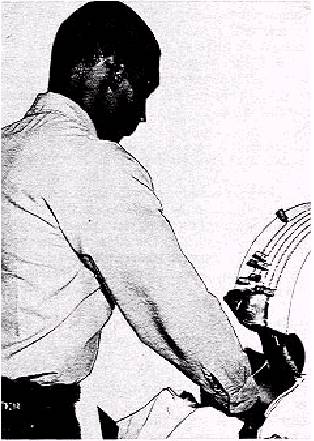 Figure 5-8.- Laundryman using the laundry marking machine. 1. Put the item to be marked underneath the tension plate and over the platen. The tension plate holds the item in place so the laundry mark can be placed exactly where you want it. Operating Ribbon-Type Machines 1. Keep the printer arm down when you set the type handles. This will prevent wrinkling of the ribbon. Care and Maintenance of Laundry Marking Machines 1. Bring the type levers to the full FORWARD position. Another way to clean the type assembly is to remove the assembly by first removing the pin inserted through the shaft channels over the shaft and disengaging the spring lock. After the assembly is removed, clean it with a steam gun. When parts of the machine become worn, they should be replaced with new ones. Keep a supply of the most used repair parts on hand. A manufacturer's instruction manual is furnished for each laundry marking machine. The mechanic who works on the machine should also have a copy of this instruction book. Do not try to do any mechanical work on the machine unless it is absolutely necessary. Always request that the work be done by a trained person from the engineering department. Ships Without Laundry Marking Machines All ships are required to have a laundry marking machine on board. Ships' laundries temporarily without laundry marking machines will have to use laundry marking pens while a machine is being procured or the old one repaired. The laundry supervisor should obtain white and black laundry markers from the bulk storeroom and charge them to cost of operations laundry. These pens will serve the same purpose as the laundry marking machine; however, they will probably slow the work process while marking clothing. For individual lots, the laundry mark has to be handwritten on the Ship's Store Laundry List, NAVSUP Form 233. Care should be taken while marking clothing with marking pens to make sure the mark does not go completely through the fabric. It is best to stencil on a semifirm surface such as cardboard, making sure you do not press too firmly. Be sure the ink from the stencil is completely dry before placing the clothing with the remainder of the lot. |