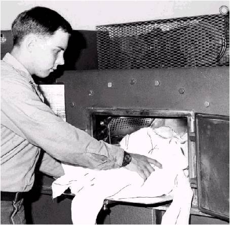 in each pocket (each cylinder door is numbered 1, 2, or 3). 8. Close the door to each cylinder; latch it securely. 9. Close the outer shell door. 10. Add required supplies to the automatic dispenser; make sure you place them in the correct bin. 11. Use the drum control disk to set the programmer chart to the beginning; make sure the master switch to the programmer is off while doing this. 12. Energize the control switch, master switch, and timer switch (in that order). From this time on, the operator normally will not have to return until the signal sounds. The bell to this signal can be silenced by securing power or depressing the button.