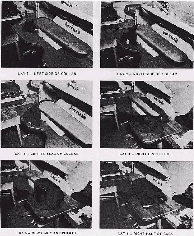 Figure 6-7.-Lays 1 thrugh 6 for pressing uniform coats.