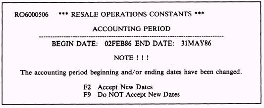 Figure 2-18.-Resale operations constants accounting period screen. 2-28