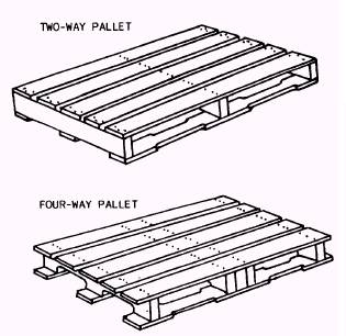 RECEIPTS OF STOCK BY THE BULK STOREROOM CUSTODIAN Once stock is inspected for quantity, quality, and damage by the receipt inspector and accepted, it will be carried to the bulk storeroom. The bulk storeroom custodian will report to the ship's store office and obtain the retained receipt documents located in the Incoming Material File (SSA-20). He or she will take copies of the receipt document to the bulk storeroom and wait until the stock is brought by the personnel. The responsible custodian will make sure boxes brought to the storeroom are not opened and all boxes arrive. If the boxes are being numbered by the receipt inspector, the custodian will make sure all numbers are accounted for. Only those personnel authorized by the bulk storeroom custodian to be in the storeroom to assist in loading operations should be there. The custodian should never allow unauthorized personnel to enter the bulk storeroom. The custodian of the bulk storeroom will verify the quantity by counting the merchandise. He or she will accept the merchandise by circling the quantity received on the receipt document, dating, and signing the accountability stamp. If the quantity of the item counted is not the same as what is shown on the receipt document, record and circle the actual quantity received and cross out the quantity shown on the receipt document. All cross outs must be initialed. Once the custodian has accepted the merchandise by dating and signing the accountability copy, he or she is legally responsible for the proper disposition of the material while it is in his or her custody. The custodian will forward the copy of the signed and dated receipt document to the ship's store officer. RECEIPT OF STOCK BY OTHER SHIP'S STORE ACTIVITIES To save time, paper work, and to provide the customer better and quicker service, items received may be delivered directly from the pier to one of the sales outlets or service activities. The receipt inspector will first accept the material and have it delivered to the sales outlet or service activity and the operator will date and sign for receipt and custody on a copy of the receipt document. The receipt document will be used as a breakout document for receipt to a sales outlet and a breakout number will be assigned from the Number Control, NAVSUP Form 980. When the sales outlet and bulk storeroom are operated by the same person a breakout document is not required. The receipt document will be extended at both cost and retail when the sales outlet and bulk storeroom are operated by the same person. For receipt to the service activity, the receipt document will be used as an issue document and a cost of operation issue number will be assigned from the Number Control, NAVSUP Form 980. The receipt of ship's store stock directly into the sales outlet or service activity is discussed later in this chapter. DUMMY RECEIPTS All material received should be accompanied by receipt papers; however, material is occasionally received without receipt papers, and when this happens, a dummy invoice must be prepared. A dummy receipt plainly marked Dummy will be prepared on a DD Form 1348-1 or a DD Form 1149. All pertinent information must be included on this invoice, and it must be used in the same manner as any other receipt document. STOWAGE AND MATERIAL HANDLING Once material is inspected and received, it must be moved to the stowage area. The stowage of ship's store stock is discussed in Ship's Serviceman Third Class, NAVEDTRA 10176. In this section, we will discuss how the material stowed is handled, various equipments, safety precautions, and how to properly lift material when handling it manually. We will also discuss safe practices that must be followed by supervisory and working personnel during materialshandling operations. Aboard ship, material handling is often done manually; however, on some ships equipment is available to assist personnel in moving materials. These equipments include forklifts, hand trucks, and other related equipments. MATERIALS-HANDLING EQUIPMENT The equipment used aboard ship to assist personnel is referred to as materials-handling equipment. In many cases you may not be operating this equipment in the normal course of your duties, but it is important you understand the operation and use because they are used extensively aboard carriers, cargo and replenishment ships, and amphibious ships. The advantages to using material-handling equipment are quite noteworthy. It speeds up the availability of material and reduces the amount of manpower required. It accomplishes this by large single movements of stock, which simplifies the stowing and shipping of material with the use of less people. Handling materials in this fashion also reduces the risk of damage to materials and reduces personnel fatigue and injuries. Pallets A pallet is a low, portable platform built of wood, metal, or fiberboard, built to specified dimensions, on which supplies are loaded, transported, or stored in units. Flat pallets are either single-faced or double-faced. Single-faced pallets have one platform with stringers underneath on which the weight of the load rests. Double-faced pallets have two platforms separated by stringers. Pallets may afford two-way or four-way entry. The two-way entry pallet is built so the forks of a forklift truck may be inserted from either the front or rear of the pallet. The four-way pallet is built so the forks of a forklift truck may be inserted from any of the four sides. Both of these pallets are shown in figure 4-2. The box pallet shown in figure 4-3 is used primarily for handling small lot items or easily crushed material.