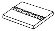 Figure 3-12.-Simple weld bead. Having an adequate root opening is essential for root penetration. Root penetration and joint penetration of welds are shown in figure 3-10. Root penetration refers to the depth that a weld extends into the root of the joint. Root penetration is measured on the center line of the root cross section. Joint penetration refers to the minimum depth that a groove (or a flange) weld extends from its face into a joint, exclusive of weld reinforcement. As you can see in the figure, the terms, root penetration and joint penetration, often refer to the same dimension. This is the case in views A, C, and E of the illustration. View B, however, shows the difference between root penetration and joint penetration. View D shows joint penetration only. Weld reinforcement is a term used to describe weld metal in excess of the metal necessary to fill a joint. (See fig. 3-11.)