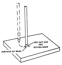 STARTING THE ARC Two basic methods are used for starting the arc: the STRIKING or BRUSHING method (fig. 7-10) and the
