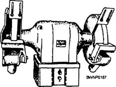 Figure 12-4.-Eye shields for bench and pedestal type of grinders. prevent work from being wedged between the tool rest and the wheel. Turn the wheel by hand after adjusting the tool rest to ensure there is satisfactory clearance completely around the wheel (fig. 12-5). The grinding wheels themselves can be sources of danger and should be examined frequently, based upon usage, for irregularities and soundness. You can test a new wheel by suspending it on a string or wire and tapping the side of the wheel with a light metal rod. A solid wheel will give off a distinct ringing sound, A wheel that does not give off such a sound must be assumed to be cracked and should be discarded. Under no circumstances should it be used. Since it is not practical to check the wheels by this manner every time you use the grinder, make it a habit never to stand in front of a grinder when it is first turned on. A cracked wheel can disintegrate and become projectiles quickly. The wheel must also run true and be balanced on the shaft. A WHEEL DRESSER (fig. 12-6) should be used to bring abrasive wheels back to round and