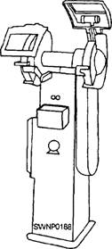 Figure 12-6.-Mechanical wheel dresser. remove the glaze that occurs after heavy use. This is done by holding the dresser firmly against the wheel with both hands, using the tool rest for support. Then, as the wheel turns, move the dresser back and forth across the surface (fig. 12-7). For maximum efficiency and safety in operating the grinder, you should observe the following rules: 1. Use the face of the wheel, never the sides. 2. Move the work back and forth across the face of the wheel. Even wear results because this action prevents the wheel from becoming grooved. 3. Keep the wheel dressed and the tool rest properly adjusted. Do not shape soft metals, like aluminum, brass, and copper, that tend to load (clog) the abrasive wheel. These metals should be shaped by other methods, such as tiling, sanding, and chipping. |