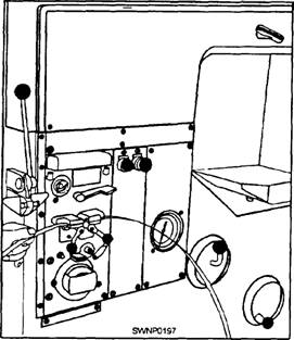 Figure 12-11.-Butt welder-grinder unit. hold the WELD button until the blade ends fuse together. Let the weld cool for a few seconds and then press the ANNEAL button until the welded area heats to a dull cherry red. Hold the welded area at that temperature momentarily by jogging the button, and then allow the temperature to fall off slowly and gradually by increasing the time between jogs. (Allow about 10 seconds for this last phase.) 2. After the band has been annealed, take it out of the welder jaws and grind the weld bead with the small grinder. Grind the weld area to the same thickness as the rest of the band. Check the back edge of the band for burrs and misalignment; grind off irregularities. After the grinding is completed, place the band in the butt welder-grinder unit and reanneal the welded areas to destroy any hardness that may have developed. See the technical manual furnished with each machine. Causes of Blade Breakage A number of conditions may cause a band saw blade to break. Breakage is unavoidable when it is the result of the peculiar stresses to which such saws are subjected. The most common causes of blade breakage that may be avoided by good judgment on the part of the operator are as follows: (1) faulty alignment and adjustment of the guides, (2) forcing or twisting a wide blade around a curve of short radius, (3) feeding too fast, (4) dullness of the teeth or the absence of sufficient set, (5) excessive tension on the blade, (6) top guide set too high above the work being cut, and (7) using a blade with a lumping or improper] y finished braze or weld. When a saw blade breaks, shut off the power immediately, and then wait until the wheels stop turning before replacing the blade. Replacing Saw Blades To replace a bandsaw blade, open the wheel guard on each wheel. Raise the guide to the top position. Remove the throat plate from the table. Release the tension on the blade by turning the top wheel adjusting screw. Remove the blade and install the replacement. |