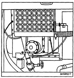 Figure 12-30.-Instrument panel. 7. After 5 minutes of operation, close the service valve and attach the hose or service line of the tool or device to be operated. 8. Open the service valves fully and start the work. After start-up, the unit automatically provides compressed air at the discharge service valves. Only periodic checking of the gauges on the instrument panel is then required. 9. When the engine is started during the day, after the first daily start-up, the above warm-up steps maybe eliminated, STOPPING THE UNIT.- When stopping the unit at the end of the day, you should take the following steps: 1. Close the service valves and permit the engine to run at idle for 5 minutes. This will allow the engine coolant temperature to level off and the entire unit to cool down. 2. Turn the ignition switch to the OFF position. COLD-WEATHER START-UP.- The following steps should be completed during cold-weather Start-up: 1. Start the engine using the heater switch and priming pump according to the engine manual. 2. Warm the engine until the engine coolant temperature reaches 120F. Leaving the side curtains closed for a few minutes helps the engine to warm up. 3. Turn the ignition switch to OFF. 4. When the engine has stopped, start the engine again with the service valves partly open. Be sure the side curtains are open. 5. When the compressor has run for several minutes and the gauges indicate normal operating conditions, connect up the tools and go to work. LUBRICATING THE UNIT.- The lubrication chart in the operator's manual for the particular make and model of compressor you are operating will show you where the unit should be lubricated, how often to lubricate, and what lubricant to use. The frequency will vary depending upon operating conditions and usage. Operating under abnormal conditions requires more frequent service. CAUTION Before servicing the compressor air system or compressor oil system, open the service valves to the atmosphere to relieve all pressure in the systems. SERVICING THE AIR CLEANER.- A two-stage, dry type of air cleaner, installed inside the engine enclosure at the right rear, falters the intake air (fig. 12-31). Air is drawn into a first-stage element that causes nearly all the dust in the air to drop into a bin. Air then enters the second-stage element, a paper cartridge, where more dust is trapped and collected. The dustbin should be removed by hand and emptied daily. Some models have a self-emptying dustbin that is piped into an aspirator in the exhaust pipeline, just beyond the muffler. When the aspirator is used, no alterations are allowed to be made to the engine muffler or exhaust pipe. A service indicator is mounted on the side of the air cleaner housing. As the paper cartridge clogs with dust, a red indicator flag gradually rises in the window. When the cartridge is completely loaded, the window will show all red, and the flag will be locked in place. It is time to replace the paper cartridge, Discard the old cartridge and reset the red flag so that the window shows clear. Cleaning used paper cartridges is not recommended.