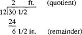 CHANGING INCHES TO FEET AND INCHES To change inches to feet and inches, divide inches by 12. The quotient will be the number of feet, and the remainder will be inches. Example: Change 30 1/2 inches to feet and inches.