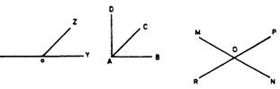 Observe that two straight lines have been drawn to form four right angles. In order to have a way to measure angles, a system of angle-degrees has been established. Assume that each of the four right angles is divided into 90 equal angles. The measure of each is 1 angle degree; therefore, in the four right angles, there are 4 x 90, or 360 angledegrees. For accurate measurement, degrees have been subdivided into minutes and minutes into seconds. 1 degree= 60 minutes ('). 1 minute= 60 seconds ("). RELATIONSHIP OF ANGLES
