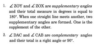 Two angles whose sum is 90 are said to be complementary, and one is the complement of the other.